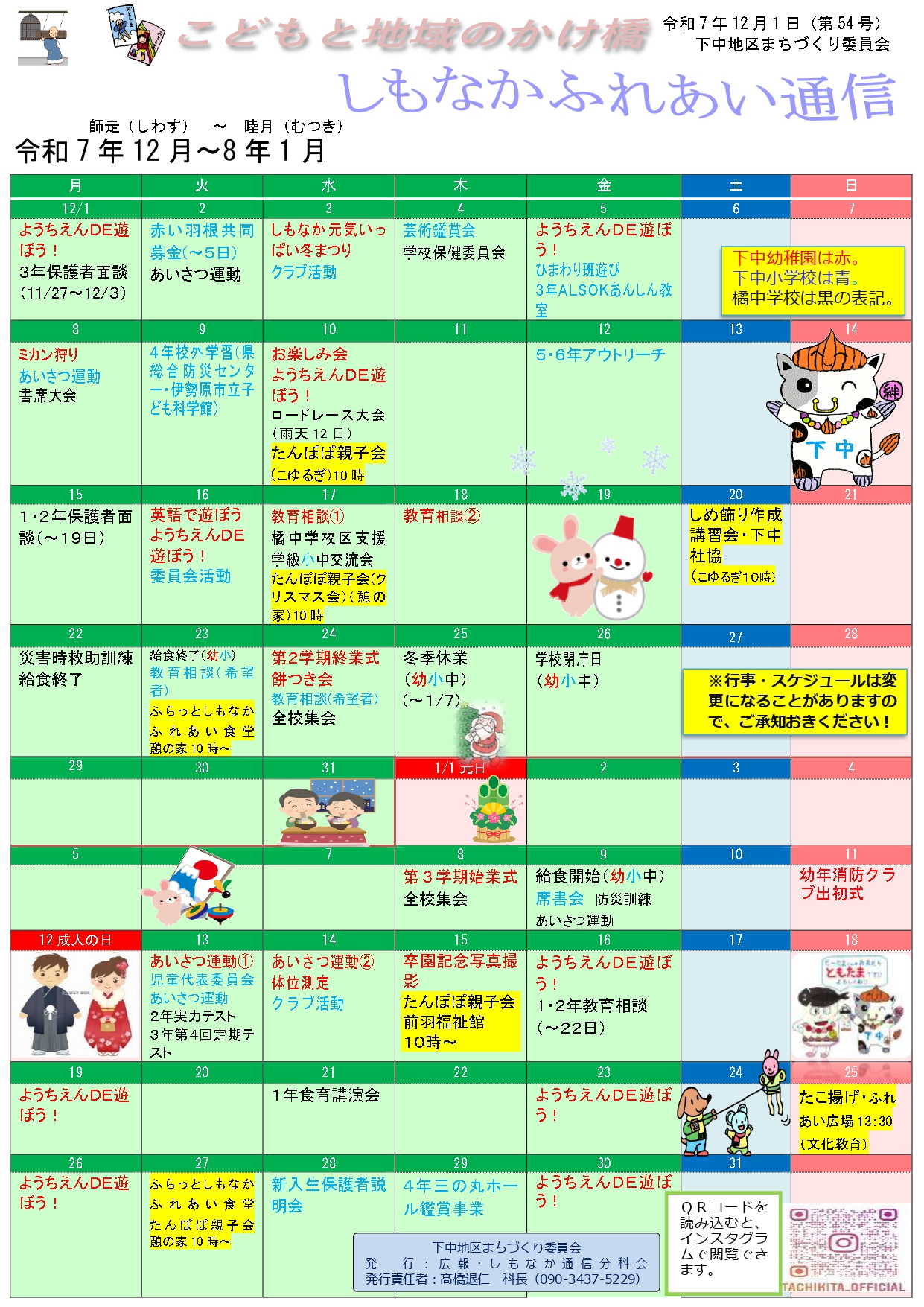 下中地区「しもなかふれあい通信」12-1月号発行!