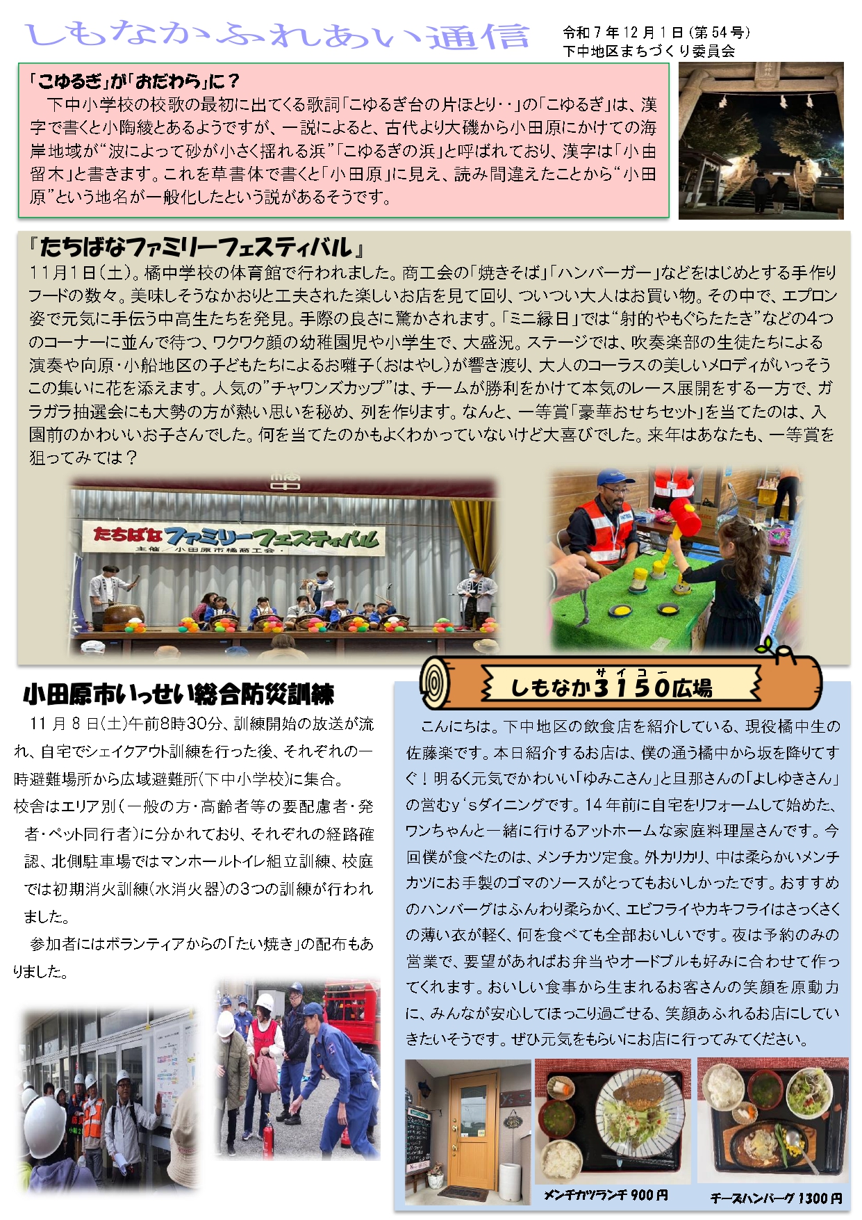 「しもなかふれあい通信」の第54号となる12-1月号を発行しました。